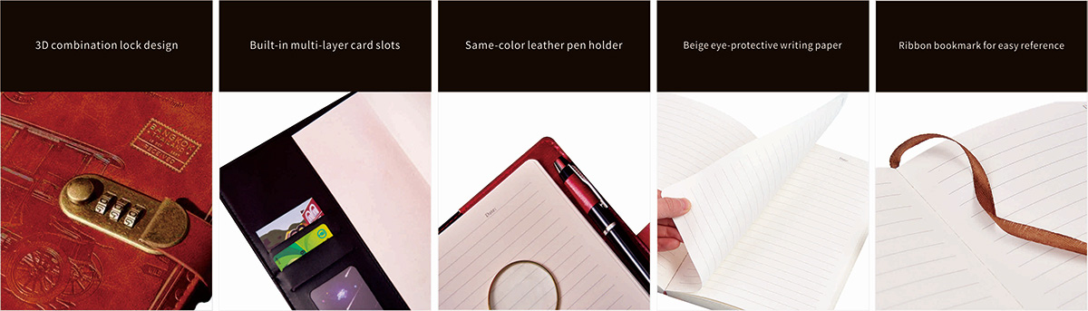 Учитывая своевременность записи вдохновения, этот запертый дневник специально разработан с функцией вставки ручки.