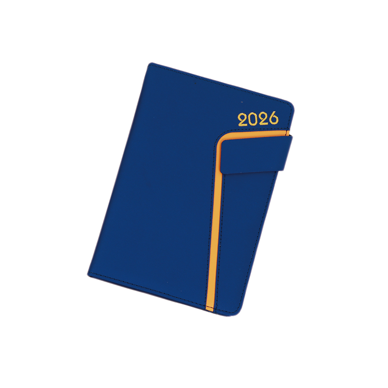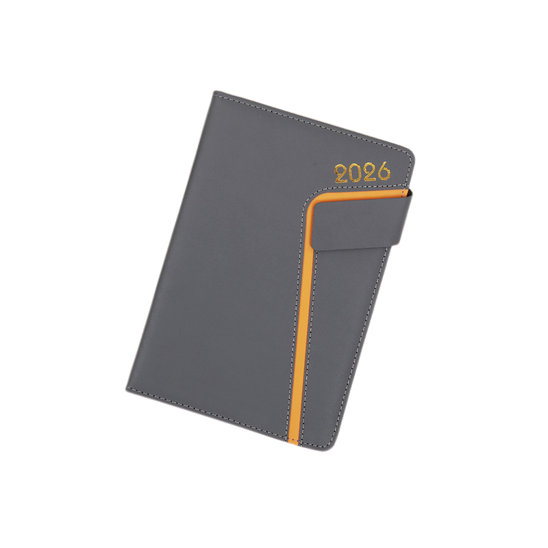 В этом немецком ноутбуке есть кожаная обложка PU с тонкой текстурой, логотипом 2026 года и ярко-оранжевой линией сбоку, в сочетании с магнитной пряжкой того же цвета, для простого и уникального дизайна.