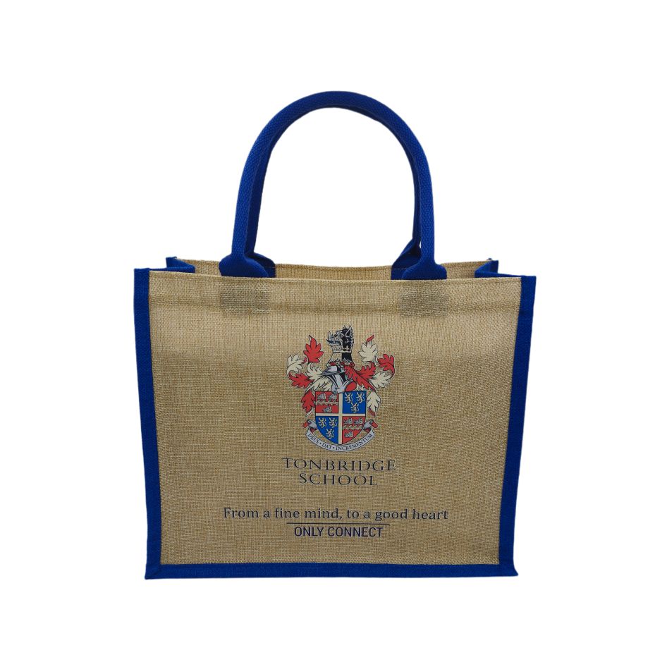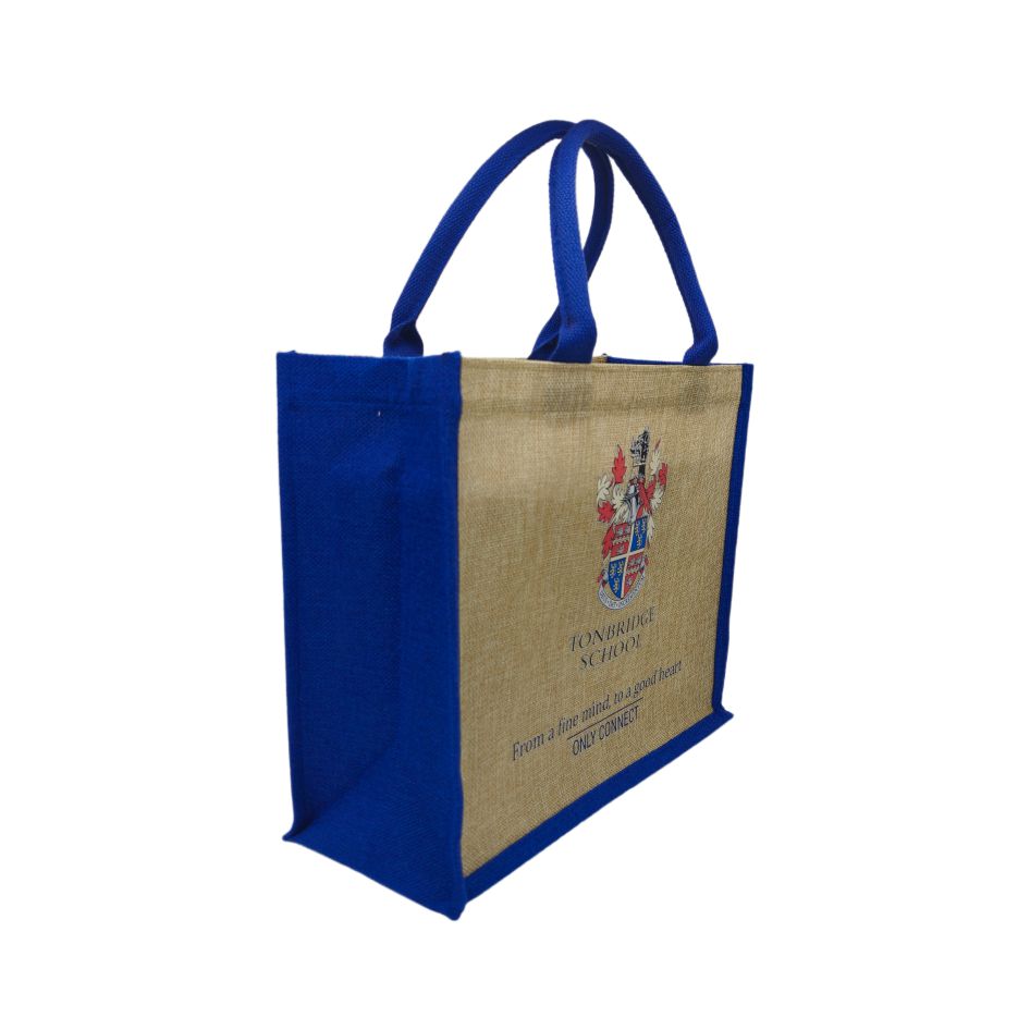 Используется льняная ткань, прочная и прочная, синяя края мешка и ручка, простой и привлекательный цветовой контрастный дизайн, со значками и лозунгами в стиле (в школе Tonbridge), уникальным и стильным, подходящим для ежедневных поездок и покупок, с эксклюзивной индивидуальностью.